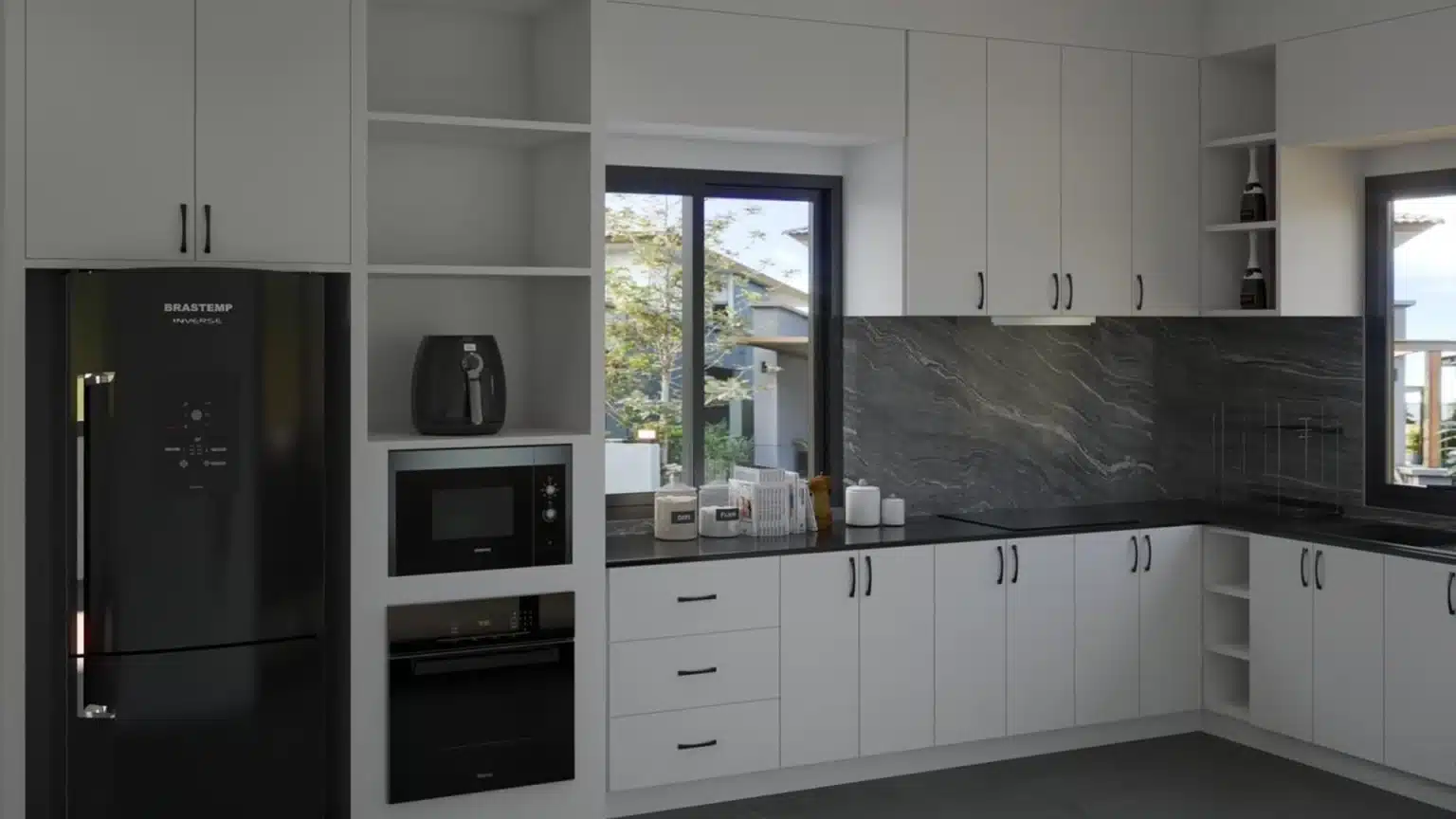 ครัวบิ้วอิน คือครัวที่ทำการบิ้วอิน จากวัสดุไม้อัดยาง ไม้ HMR จะมีความทนชื้น ทนน้ำ แล้วกรุทับด้วยลามิเนต ข้อดี คือ ความสวยงาม ออกแบบยืดหยุ่นได้ตาม Interior สามารถเลือก TOP ได้ตามงบประมาณ เช่น ท๊อปหินแกรนิต หินอ่อน ลามิเนต ข้อเสีย คือ ไม่ควรอยู่หลังบ้าน หรือ Semi Outdoor