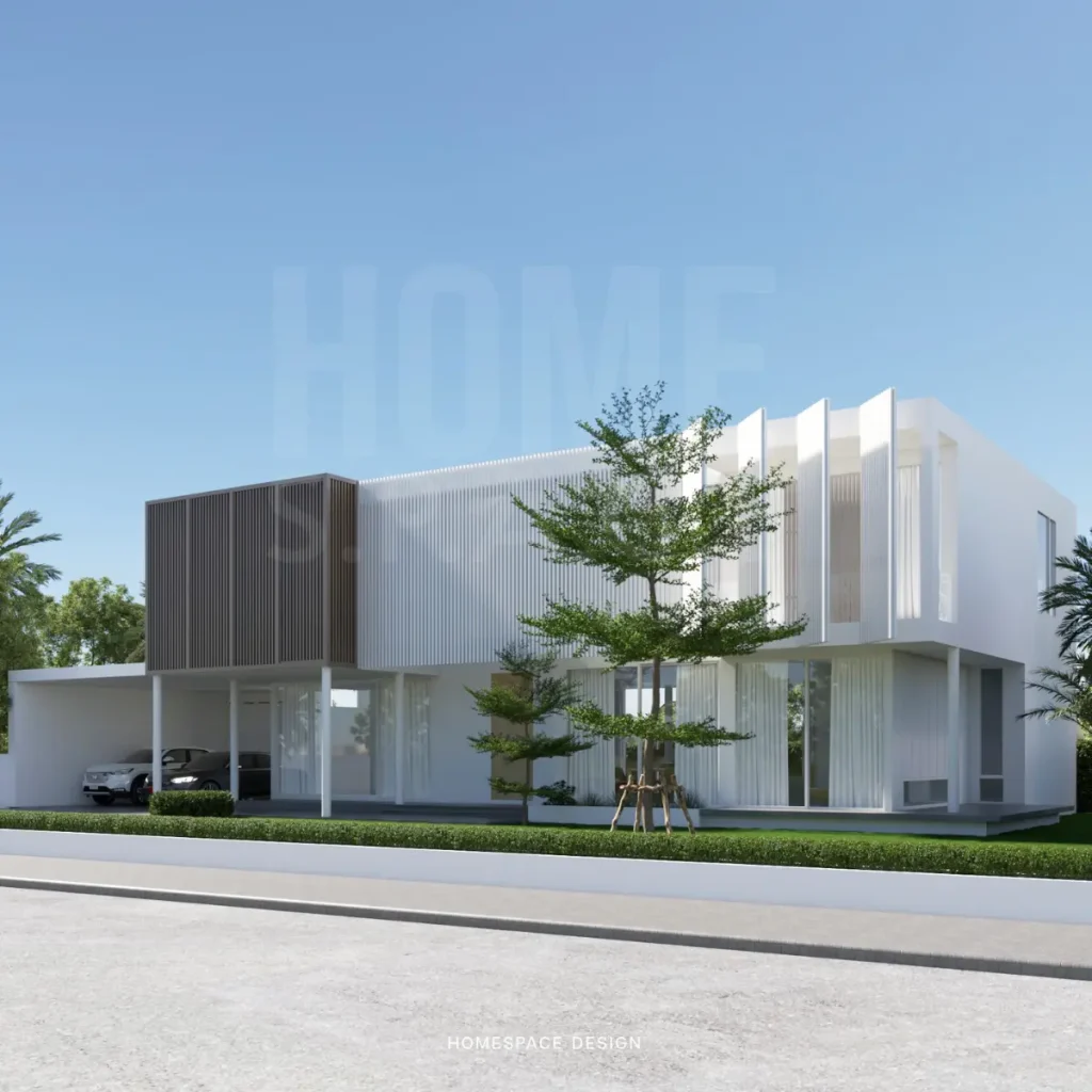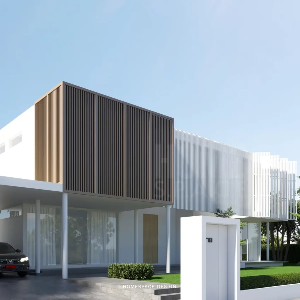 - ดีไซน์ Modern เรียบหรู โครงสร้างเน้นเส้นสายแนวตรงและรูปทรงเรขาคณิต ทำให้บ้านดูทันสมัยและมีเอกลักษณ์เฉพาะตัว
